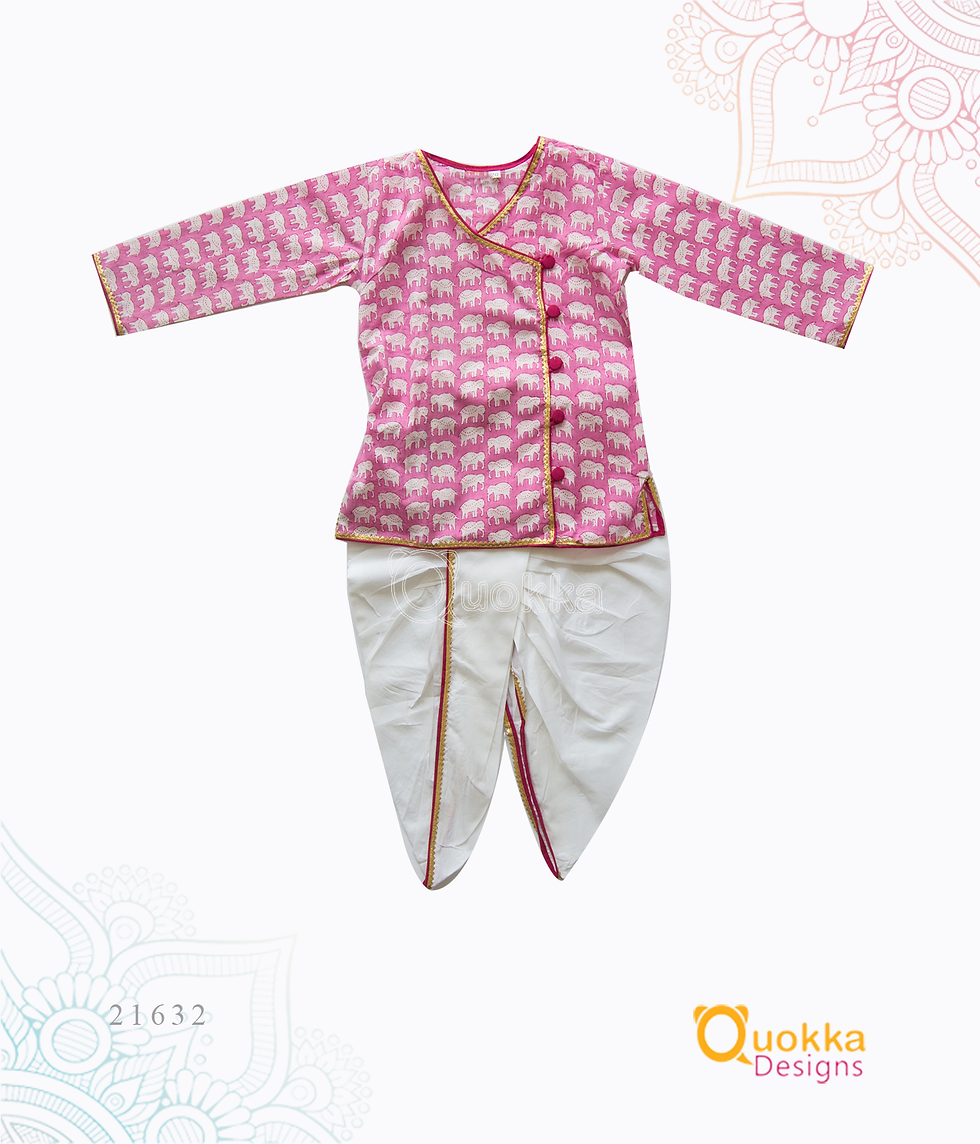 Kurta Dhoti - elephant print top - White Dhoti - 21619